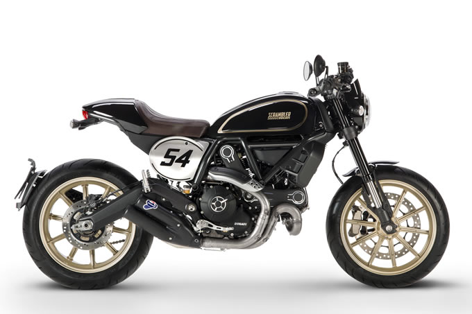 1960年代にイギリスで発祥したカフェレーサー・カルチャーの手法でカスタムされた最新スクランブラーが今年新登場。前後17インチアルミキャストホイールにはピレリ・ディアブロロッソ2が装着され、ラジアルマウントブレーキキャリパー、フルアジャスタブルフォークなどでロードスポーツとしての性能に磨きをかけた。アルミ製セパレートハンドルやバーエンドミラーもカフェレーサームード満点の装備だ。
