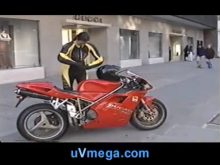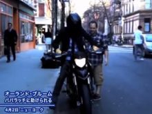 オーランド・ブルーム、自慢のドゥカティをパパラッチに押してもらう