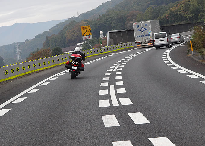 それどころか…ドゥカティ横浜さんからの帰り道、嬉しい誤算があったのです。これまで、スポーティなバードカ号のハンドリングはもちろん気に入っていましたが、「のんびり走りたいときはちょっと全体的な運動性がクイック過ぎるかなぁ」なんて思っていたことも事実。ところが、ケースを装着した状態だと、それが適度に鈍くなって実に塩梅がよろしい。しかも、空力を考慮したと思われるサイドケースの形状もあってか、高速走行がビシッと安定。スポーツツアラーとしてはかなり理想的なハンドリングになったと言えそうです。スポーティに走りたいときはケースを外してシャープなハンドリングを楽しみ、ツーリングや日常生活ではトップとサイドのケースを使い分けて、落ち着いたハンドリングの快適走行。1台でそんな風に楽しめるのですから、「本当にブツヨクに負けて良かったなぁ」と思ったのでした。(続く)
