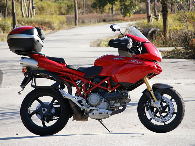 前回はバードカ号にサイドパニアとトップケースを装着したというご報告をしましたが、もちろん全てのケースを常用しているワケではありません。写真のように、普段はトップケースだけを装着。荷物が爆発的に増えるタンデムやロングツーリングの時はサイドパニアを追加、という具合に使い分けています。やはり、状況に応じて付け外しが簡単にできるケースはとても便利。編集部のブログにも書きましたが、昨年末は年越しの準備で混雑する街中に、バードカ号で松飾りを買いにいったのですが、実に快適でした。バイク用のケースというと、どうしても沢山の荷物を積載するというイメージがありますが、潰したり型崩れさせたくないような品物を運ぶときにも最適。さすがに大判のピザは無理ですが、フワフワのパンを買いに行くことも可能です。確かに、バイクのスタイリングを重視すればケース類は装着したくないところですが、この便利さを一度知ってしまうともう後戻りできません。ということで、バードカ号のトップケースは常時装着です。