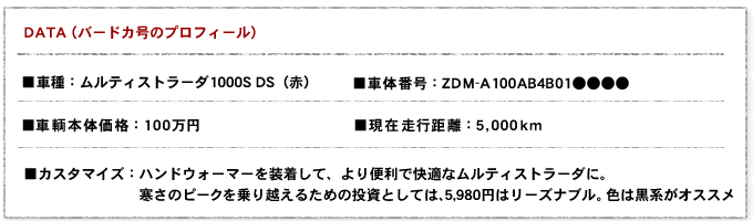 ケースといい、ハンドウォーマーといい、その便利さを一度知ってしまうと手放せなくなるモノが多く、どんどん妙な方向に進んでいくバードカ号なのでありました。(続く)