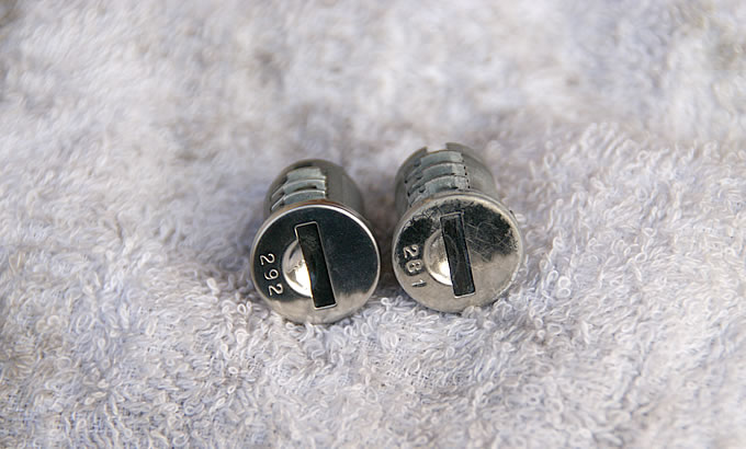 左が従来のキーシリンダー、右がサイドパニアと共通のもの。バラバラになりやすいので取り扱い注意!