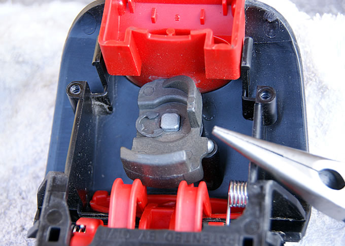 サークリップはそれほど固くないので工具はラジオペンチ1本で十分。ついでにシリンダーに注油。