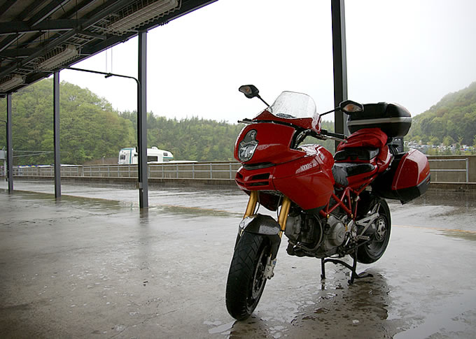 4月24日~26日、待ちに待ったMotoGP日本グランプリが開催され、多くのドゥカティスタがツインリンクもてぎに向ったことと思います。もちろん、バードカ号も発進。決勝レース前日入りして、予選からドゥカティを応援しようと目論んでいたのですが…。大粒の雨と寒さ、目の前で起こった常磐自動車道の事故と状況は最悪。必死の思いでツインリンクもてぎに到着してみれば予選はキャンセル。決勝レース当日もウォームアップ走行まで不安定な天候に左右され…。よくまぁコレだけ悪いことが重なったものだと関心してしまうほどでした。決勝レースはすばらしい天候に恵まれましたが、リザルトはストーナーもヘイデンもちょっと残念でしたし…。