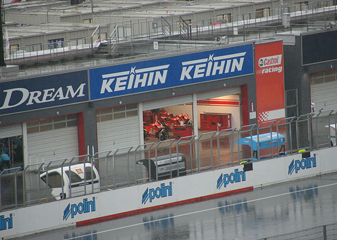 予選は全てキャンセル。ストーナーとヘイデンのデスモセディチGP9も待ちぼうけという感じです。