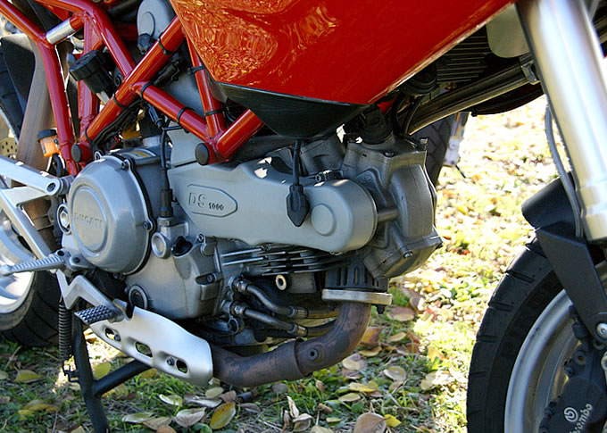 さて、このAMSフジイのムルティストラーダ1000DS。劇的にパワーアップしたり、キャラクターがガラッと変わったりしているわけではないのに、普段の走行にかかわる部分がとても上質になっているのが実感できます。エンジンはバードカ号よりも明らかに全域でスムーズ。1000ccのDSエンジンを搭載するバードカ号は、街中で多用する3000回転以下の領域が不得意ですが、そうした低回転域でもギクシャクすることが少なく、そこからスロットルを開けていったときも、振動も少なく滑らかに中速~高速へと繋がります。このエンジンに施されたメニューは、クランクシャフトやジェネレーターローターのバランス取り、念入りなインジェクション調整などと聞いていましたが、特別なパーツを装着することなく、ここまでエンジンが変貌するとは…。