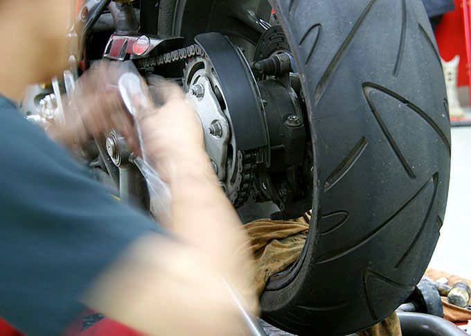 その後、気を取り直して作業を見学していたのですが、新しいパッドの丁寧な面取りや、キャリパー内側の清掃、グリスアップの仕方など、やはりプロのメカニックの方の作業は参考になる点が多数ありました。そして今回は新しく注入するオイルもちょっと変更して、シェルアドバンス・ウルトラの15W-50をチョイス。これまで使っていたのが同銘柄の10W-40でしたから、その変化も楽しみなところ。で、作業を終えて夜の街を走り始めたのですが、やはりパッド残量たっぷりのリアブレーキのタッチはかなり向上。そしてやや固めのオイルも正解という印象です。10W-40だと新油でも細かなバイブレーションと盛大なメカノイズが発生していたのですが、15W-50だと劇的に静かで滑らかになったのを体感できます。個人的には15W-50を常用しても良いと思うぐらいです。ということで、今回は深い反省とともに新たな発見をした入庫となりました。