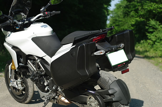 専用設計のパニアケースは、装着しても車幅はギリギリまでシェイプ。それでもすり抜けには気を遣いますが…。