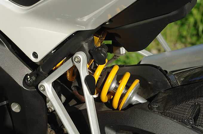走行モードに連動するオーリンズ製の電子制御式サスペンション。オフロードまでカバーする性能は驚異的。