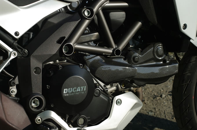 ということで市街地での走りっぷりに気をよくした我々は、高速道路をランデブー走行しつつツーリングモードのシーンを撮影。ここで意外だったのが、新型がそれほど速いと感じなかったこと。まったくもって個人的な感想ですが、加速感や走りの鋭さは愛車の旧型ムルティストラーダ1000S DSの方が刺激的だと感じたぐらい。もちろん新型が遅いということではなくて、競争したら旧型を振り切るのでしょうけど、あくまでも体感上はそう感じました。まあ、新型の日本仕様は150HP/9250rpm ⇒ 102HP/6000rpmと本国仕様から大幅にディチューンされているので、スペック上も92HP/8,000rpmの旧型(1000)に対してそれほど有利なわけじゃない。それでも想像を遥かに超えるパフォーマンスを発揮するドゥカティ空冷Lツインを凌駕しているのですから、新型日本仕様もかなり速いバイクだということをご理解いただけるのではないでしょうか。