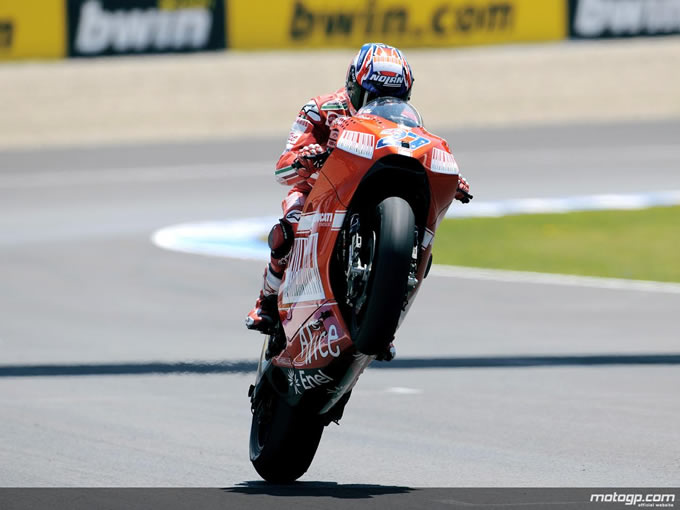 絶好のドライコンディションの下、5月3日にヘレスサーキットで行われたmotoGPスペインラウンド。ストーナーは熱烈な声援を受けるスペイン出身ライダー、ペドロサとロレンソに続き3番グリッドを獲得する幸先の良い出足となった。その一方で前回の日本ラウンドで痛恨のリタイアとなったヘイデンは今回も調子が優れず、16番手からのスタート。序盤2戦の挽回を狙うが、未だ風向きはアゲインストだ。