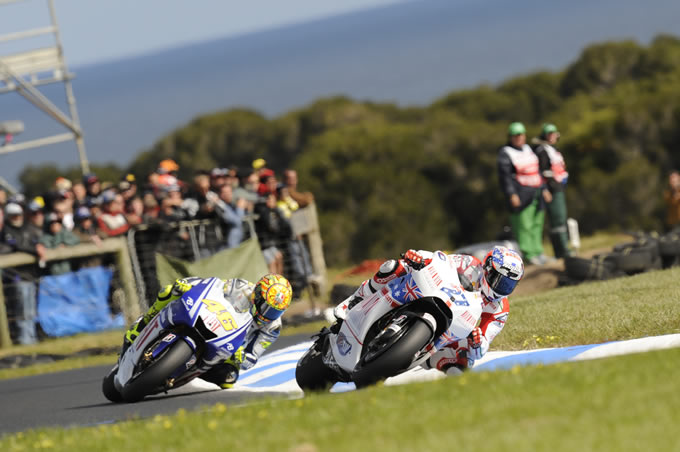 決勝当日、舞台となるフィリップアイランドのコンディションはドライ。ストーナーはオープニングラップこそペドロサに先行されたものの、すぐに逆転してトップに躍り出た。その後2番手でスタートしたロッシと先頭グループを形成し、お互い1分30秒台のラップタイムを刻み続けて後続を引き離していく。途中ロッシが何度かパスするために仕掛けたがストーナーの集中力は途切れず、最後までトップの座を譲ることなくチェッカーを受け、今季3勝目を飾った。3戦の欠場のためチャンピオン争いには届かないが、来シーズンに向けて大きな期待を抱かせる1勝と言えるだろう。なお、ロッシとポイントリーダーを争うロレンソは、スタートに出遅れてヘイデンにパスされた直後に接触。ヘイデンはなんとかレースに復帰できたものの最下位、ロレンソはフロントブレーキを破損しリタイアとなってしまった。今シーズン不運が続いているヘイデンだが、ここにきてまたもや再発。悔しいリザルトとなってしまった。