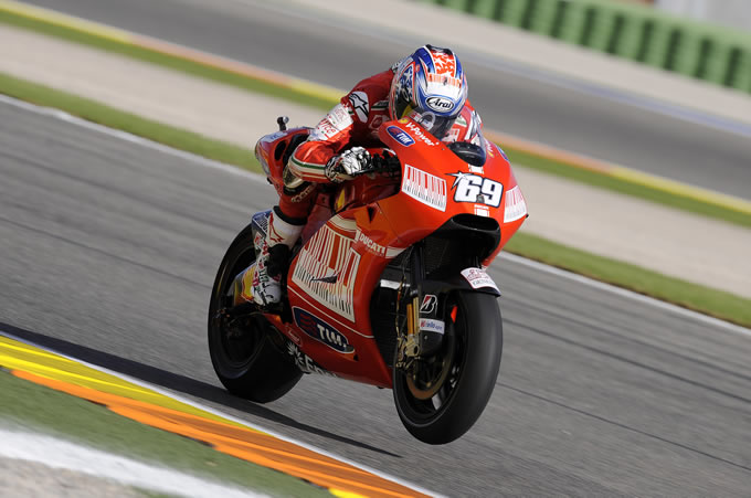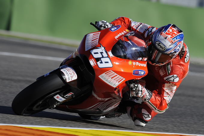 2009年を締めくくるMotoGP最終戦は、晴天のもとバレンシアサーキットで行われた。今年度のチャンピオンは前戦であるマレーシアGPで確定してしまったが、ランキング2位の座は未だ未確定。王者のチームメイトであるロレンソか、それとも上り調子のストーナーか。期待が高まる中行われた予選において、ストーナーは好タイムをマーク。ポールポジションを見事に獲得し、本番についても大きな期待がかかった。しかし、好事魔多し。レース本番直前のウォームアップ走行時、コーナーの立ち上がりでストーナーがハイサイドを起こしクラッシュするというアクシデントが発生。そのため、ストーナーはリタイアとなり、期待されていた2位争いは水泡と帰した。決勝レースでは芳賀を破りドゥカティから世界スーパーバイク選手権タイトルを奪い取ったベン・スピースも参戦しているということもあり、熱いバトルを期待されていたが何とも悲しい結果に終わってしまった。