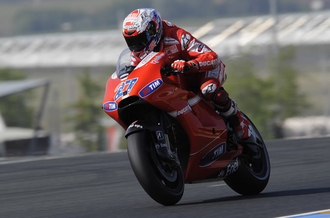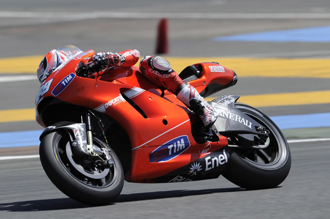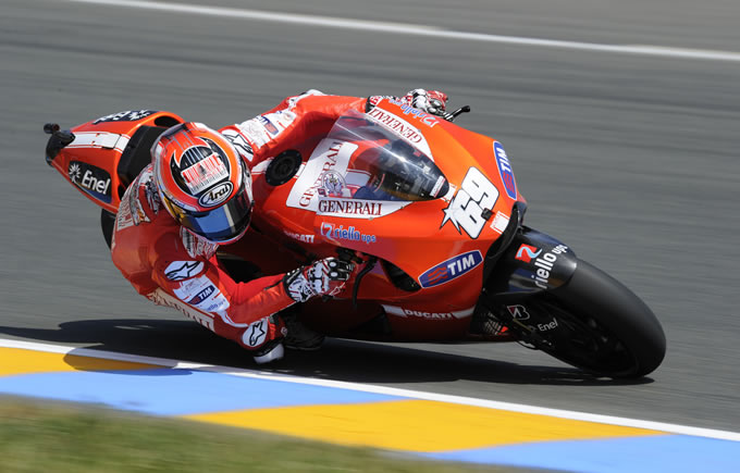 5月23日、快晴のル・マンサーキットで行われたMotoGPフランスラウンド。開幕戦から表彰台の無いドゥカティにとって、今後のチャンピオンレースを争うためにもそろそろ勝利が必要だ。昨年と違い未だ勝利のないストーナーだが、決勝前のウォームアップではトップタイムをマーク。ヘイデンも3番手のラップタイムを刻み、勝利の予感を漂わせつつ決勝レースを迎えることとなった。