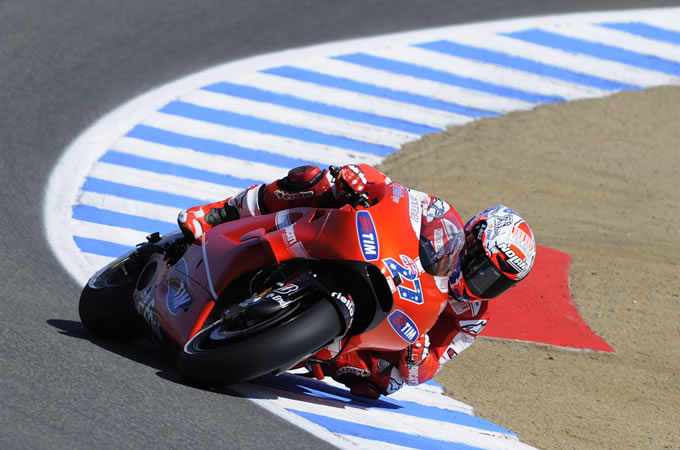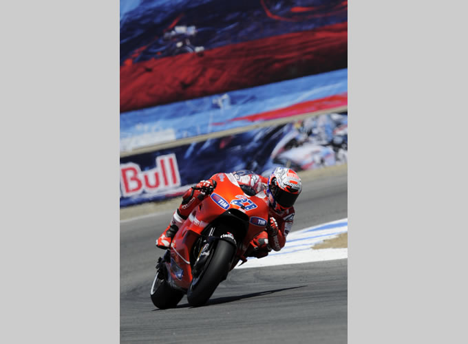 ドゥカティにとってアメリカGPは縁起の良いラウンドだ。これまでも数々好成績を収めており、当然今回のレースでもスペクタクルな結果が期待される。前回の戦いで好調を感じさせたストーナーは、ラグナセカでもコンディションをキープしており、予選ではロレンソに僅差の2番手を獲得し、フロントローからのスタート。ヘイデンは7番手となったが、ホームコースであることを考えれば、決して不利過ぎるポジションではない。