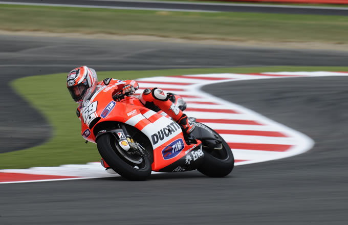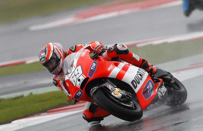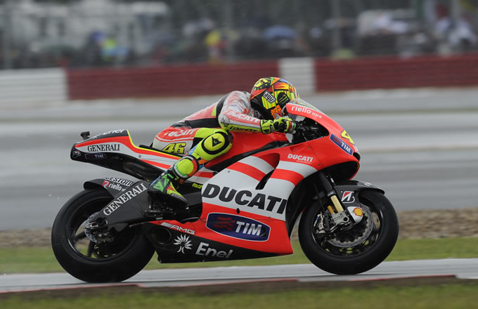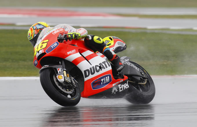 レース前から雨の予報が出ていた2011年MotoGP第6戦イギリスGPは、「ウェットレース」宣言がなされレースはスタートした。ドゥカティ・モトGPチームのニッキー・ヘイデンとバレンティーノ・ロッシは、上位ライダーに転倒が続出する中で確実に順位を上げ、それぞれ4位と6位でチェッカーを受けた。ヘイデンは表彰台にあと一歩及ばなかったものの、ファステスト・ラップタイムを記録。ロッシは13番グリッドと今季最悪のスタートポジションだったが、それを補って余りある順位でフィニッシュした。