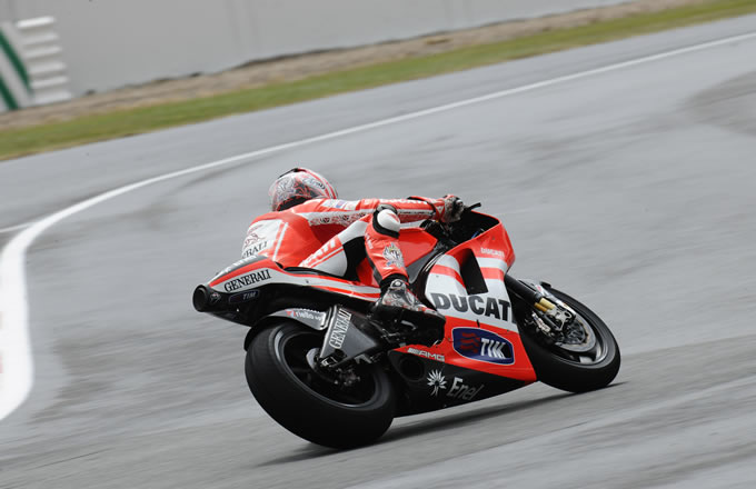 「開幕以来、もっとも困難な週末だったことは間違いないが、少なくともダメージを最小限で抑えることには成功した。レース前の状況を考えれば、6位という結果はポジティブに捉えていい。おかげでランキング4位にとどまることができたし、総得点でも大きな差をつけられずに済んだ。僕はシルバーストンの経験が浅いので、少なからずそれがハンディになったが、セットアップを改善できなかったことも事実だ。今日のニッキー(ヘイデン)はかなり乗れていた。ファステスト・ラップタイムもマークして、ウェットでのドゥカティの戦闘力を証明してくれた。だが、開発熟成はまだ十分ではない。ライディングし難くて、残念ながらハードにプッシュできなかった。チームやマシンだけでなく、自分の責任でもあるので、力を合わせて状況を改善して、いち早くルマンやカタルーニャと同様のレベルに戻さなければならない。それをベースにして、いっそう前進したい」