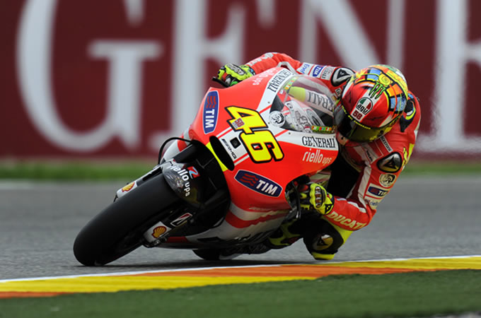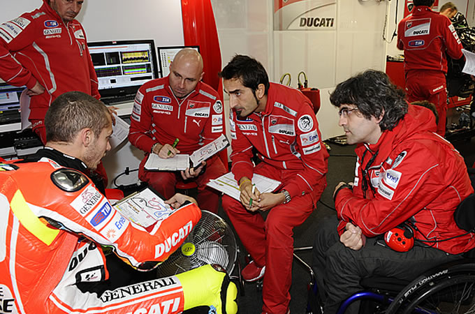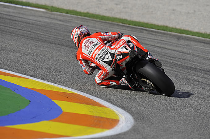 ドゥカティMotoGPチームは、2011年シーズンの最終戦となるバレンシアで、金曜のフリー走行、土曜の予選ともに良好なパフォーマンスを示していた。しかし、日曜のレースでは、スタート直後の第1コーナーでライバルが転倒、バレンティーノ・ロッシとニッキー・ヘイデンはこれに巻き込まれクラッシュし、早々にレースを終えることになった。