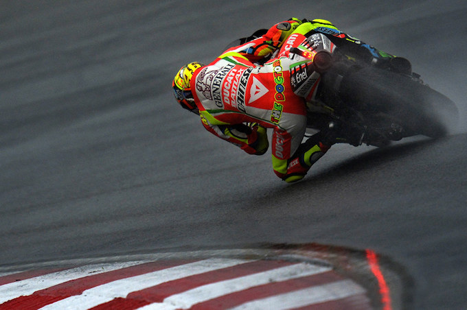 チームメイトのロッシは、4列目から素晴らしいスタートを決め、オープニングラップ終了時点で5番手までポジションを上げると、9周目までドヴィツィオーゾやストーナーらと激しい3位争いを展開した。しかし、雨足が強まる中、7コーナーで大きくアウトにはらみ、9位までポジションを落とした。その後、再び5位まで順位を回復したものの、ここで赤旗が振られレースは7周を残して中断された。天候の回復を待ったが、さらに雨が強まったため、再スタートは行われず、このままレースは終了した。