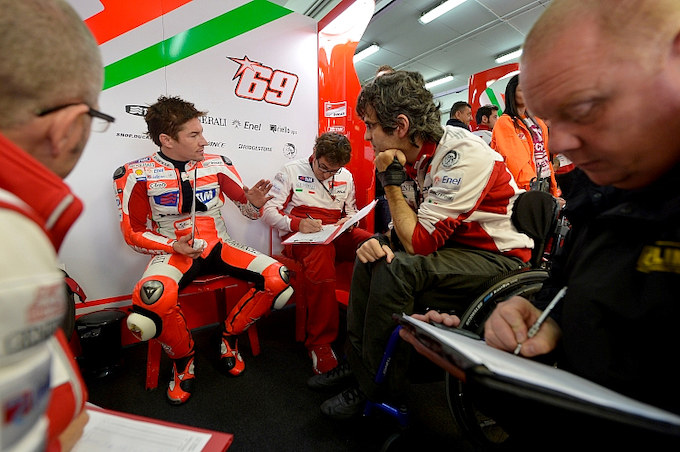 「ドゥカティ最後のレースをこういう形で終えるのは残念でならない。ウェットのウォームアップでは好転の兆しが見えていたので、レースも同様のコンディションならば良い結果が得られたに違いない。だが、今日のように(ウェットか、ドライか)どっちつかずの状況だと判断はかなり難しい。結局、今日はスリックタイヤを選択するのが正解だったが、グリッドにすでに並んでいる僕のマシンはドライ・セッティングとは大きく違っており、スタート時点ではマシンを交換する気にはなれなかった。レインタイヤで走行した序盤はフィーリングが良かったものの、マシン交換の後で状況が厳しくなった。コース上には確かに乾いたラインはあったが、自分の思ったライン通りにマシンを操ることができなかった。ラインを外すと非常に滑りやすく、リスキーだった。とにかくチェッカーまで走り切ろう、と気持ちを切り替えるしかなかった。ドゥカティとともに戦った2年間の締めくくりとして、もっと上位でフィニッシュしたかった。2シーズンともに楽な展開ではなかったが、素晴らしいスタッフとともに MotoGP を戦えたことをうれしく思っている」