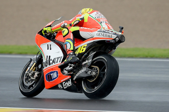 レインタイヤでスタートしたロッシは、序盤に4番手につけた後、残り 25 ラップでピットインしてマシンを交換。だが、ドライタイヤはレインタイヤほどフィーリングが合わず、最終的に 10 位でチェッカーを受けることになった。