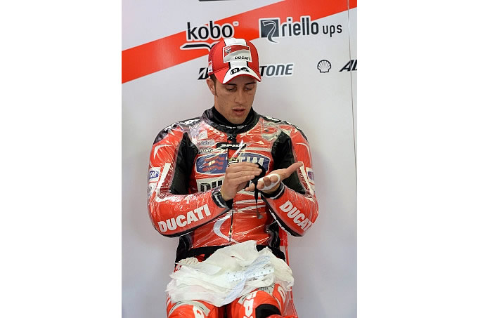 第 17 戦となる日本グランプリは、金曜日から土曜日にかけて濃霧や大雨による視界不良でフリー走行がキャンセル、予選も一度のみという通常とは異なるコンディションとなった。レース当日は晴れわたり、路面はドライとなったため、ドゥカティ・チームのライダーは苦戦を強いられることになった。ニッキー・ヘイデンは3番グリッド、アンドレア・ドヴィツィオーゾは6番グリッドと予選で好位置を確保しながらも、これを活かし切れず、それぞれ9位と 10位でチェッカーを受けた。