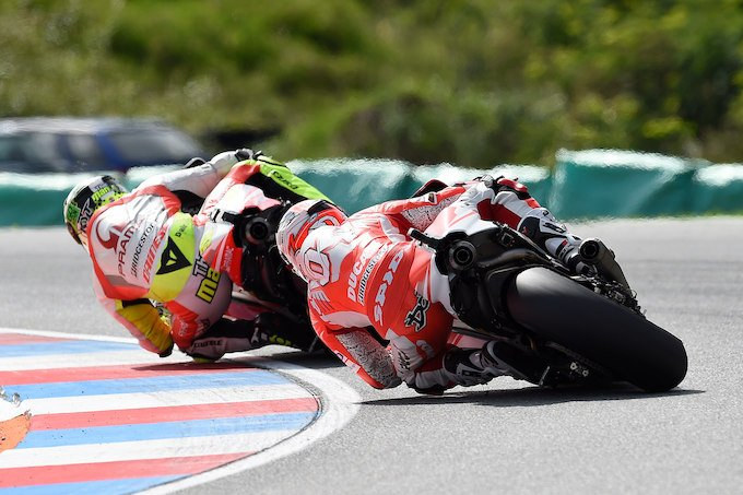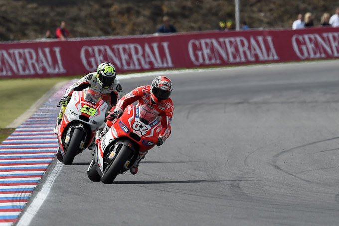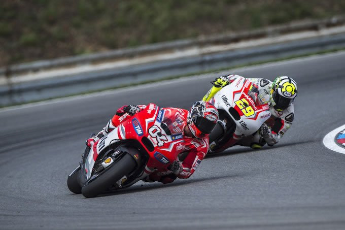 チェコ共和国のブルノで開催された MotoGP 第 11 戦チェコ GP で、Ducati Team のアンドレア・ドヴィツィオーゾは、僚友のアンドレア・イアンノーネ(プラマックレーシングチーム)と熾烈なバトルの末、6位でチェッカーを受けた。2番グリッドからスタートしたドヴィツィオーゾは、オープニングラップを2番手で通過。しかし、序盤にポジションを落とし、イアンノーネに続く6位となった。16 周目には僚友をオーバーテイクしたものの、3周後に再逆転を許し、そのままの順位でフィニッシュを迎えた。ウィナーのダニ・ペドロサ(ホンダ)との差は 17 秒だった。