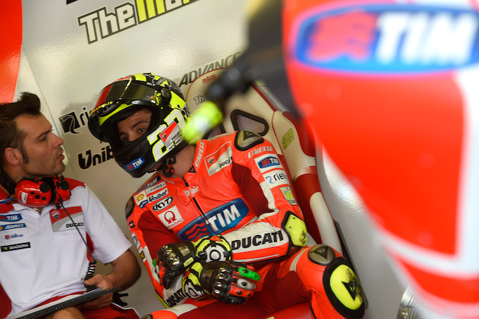 イアンノーネは、土曜日の予選で3番手タイム。フロントローからのスタートだったものの、スタート数秒前に“ウエット”マッピングをインプットしてしまい、デスモセディチGP15は理想のパフォーマンスを発揮できなかった。