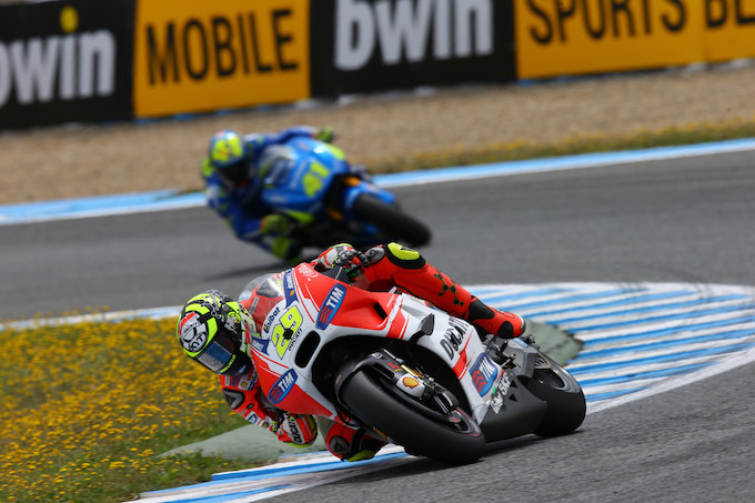 2015 MotoGP第4戦スペインGPが、ヘレス・デ・ラ・フロンテーラで開催された。ドゥカティチームのアンドレア・イアンノーネは、スタートに失敗し、6位でフィニッシュ。チームメイトのドヴィツィオーゾは、2周目の最終コーナーでコースアウトするなどのミスにより順位を下げ、9位でレースを終えた。