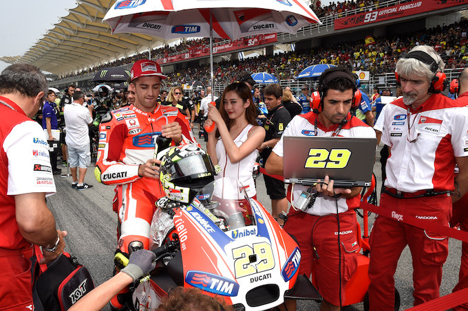 MotoGPの2015年シーズンもいよいよ佳境に入り、第17戦となるマレーシアGPがセパン・インターナショナル・サーキットで開催された。ドゥカティチームのアンドレア・イアンノーネとアンドレア・ドヴィツィオーゾは、ともにリタイアを余儀なくされた。
