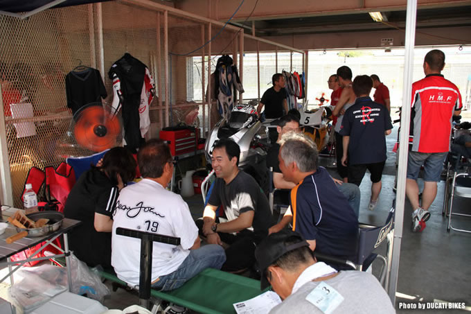 07レースの合間は和気藹々と仲間たちと談笑を楽しめるのが、ドゥカティカップの良いところです。
