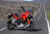 先日行われた第37回東京モーターサイクルショーにおいて、ついにムルティストラーダ1200が日本上陸を果たした。その他ブースには、ハイパーモタード1100EVO&SP、スーパーバイク1198S コルサスペシャルエディション、モンスター1100ABSといった、今年のドゥカティニューラインナップが勢ぞろい。その中でも壇上に設置された赤と白のムルティストラーダ1200の注目度は高く、多くの来訪客が熱い視線を注いでいた。日本国内での発売予定は5月末以降とまだ先になるが、生まれ変わった水冷モデルの存在感は圧倒的。今回のフォトレポートでは、通常の展示では見ることの出来ないシート下の構造や実際のメーター表示なども掲載したので、当日訪問した人も出来なかった人も是非チェックしてほしい。