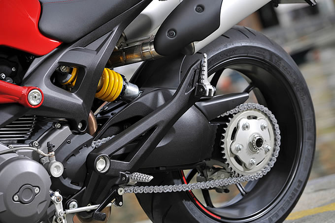 05上位モデルであるモンスター1100を踏襲した片持ち式スイングアームを採用。