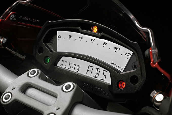 10メーターはこれまでのモンスターシリーズと共通のデザインだが、センターにABS警告灯を設置。