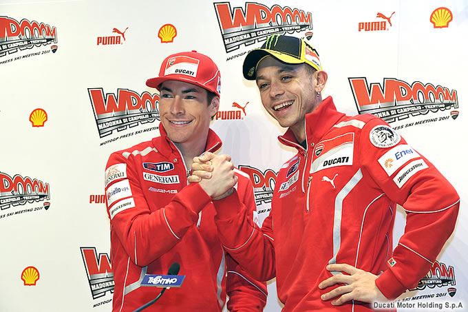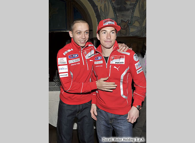 05ドゥカティ在籍3年目の元世界王者ニッキー・ヘイデンと、こちらも元世界王者バレンティーノ・ロッシのツーショット!