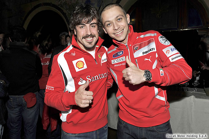 09ロッシとアロンソの夢のツーショット。二人合わせて年俸60億円以上!?