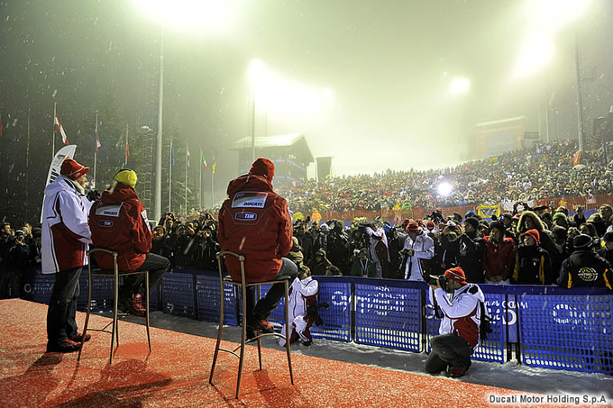 26ステージ上で記念撮影。2011シーズンはこの二人がドゥカティを走らせる。