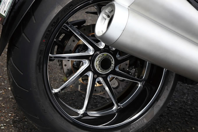 ドゥカティにあるまじき長いホイールベースは、ドッカンと加速している時も恐るべき安定感をまったく失わない。240のタイヤも路面に食いついて離さない。ドラッグレーサーのごとき加速を思う存分楽しむ事が出来るのは、まさしくこの車体のおかげだ。しかし、ここまで安定しているとハンドリングがドッシリと重いマシンになるのが普通だ。ワインディングではこれがいったいどうなるのか、それがとても気になる。