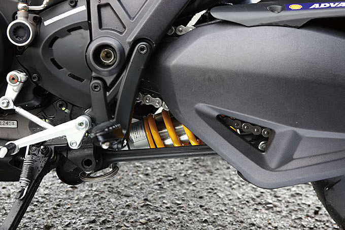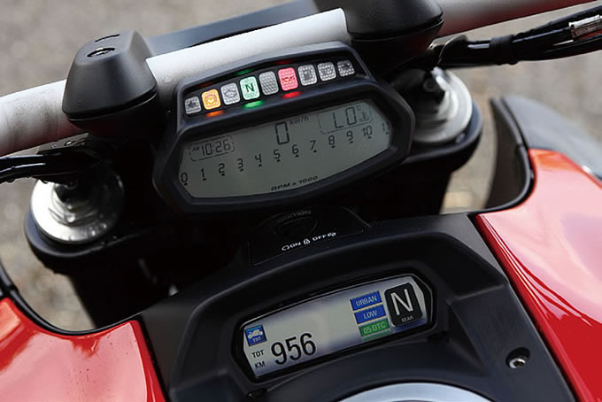 マルチのハイパワーエンジンは、こういう時に恐怖感が先に立ってしまうことも多いのだが、とんでもない加速の中でゲラゲラ笑ってしまうくらいに愉快なのは、たぶんドゥカティのパワーユニットだからこそ。猛烈に速いのと同時に猛烈に愉快なのである。スーパーバイクレースで最速を目指してきたエンジンを良くぞここまで変身させたと思う。ちなみにエンジンには最近流行のパワーモードを切り替えるセレクターがあり、スイッチ一つでエンジン特性はガラリと変わる。まさに喜怒哀楽の激しいイタリア人気質そのままである。