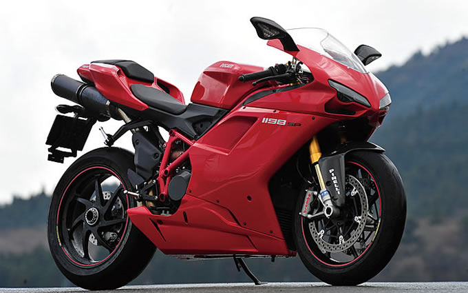 続いて848と同じく2009年にデビューした1198はWSBKでタイトルを獲得した1098Rと同一のギアレシオや真円直径63.9mmのスロットルボディのみならずボア106mm×ストローク67.9mmの数値までダイレクトに反映され1198.4ccの排気量を手に入れた。こちらもSモデルを例に挙げて紹介するが、まず注目すべきは8段階ものセッティングレベルがあり、それぞれにホイールスピン許容度を選択できるDTCの採用である。100ccの排気量アップに伴い1.2kg増大して13.4kg / 8,000rpmとなった強大なトルクを武器に鋭さが増した加速性能をDTCがバックアップし、常に最適なパワーを伝達する。排気量アップと新たな装備が追加され重量が増したにもかかわらず、真空ダイカスト製法のクランクケース、鍛造マシン仕上げアルミホイール、ヘッドライトユニットの見直しによって車両重量は169kgと2kgもの軽量化を達成し、コーナリング初期の回頭性や切り返しが一層軽くなるなど運動性も向上した。