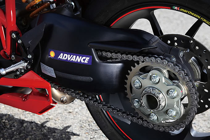 DUCATI史上最強の水冷L型ツインエンジンである、テスタストレッタ・エボルツィオーネを搭載。WSBKを走るレーサーと同じく、106mmのボア径と67.9mmのストローク長で、1198.4ccの排気量となる。
