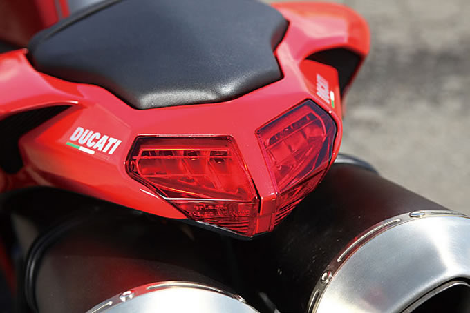 レーシーなスタイリングを損ねないために、テールランプはかなり小型なタイプとなっている。タンデムシートも小さく、実際に長時間乗車は辛い。エマージェンシー用と言ってもいいだろう。