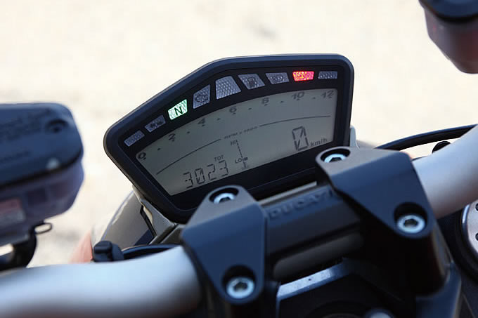 とはいえ、Sとの車重差は2kgとほんの僅か。また、Sでは装備されている DTC (ドゥカティ・トラクション・コントロール)は省かれているが、DDA (ドゥカティ・データ・アナライザー)の装着は可能な仕様となっているため、購入後のカスタムプランがある人や、気軽にストリートファイターの世界を覗いてみたい人は、このモデルから始めてみるのも悪くない。