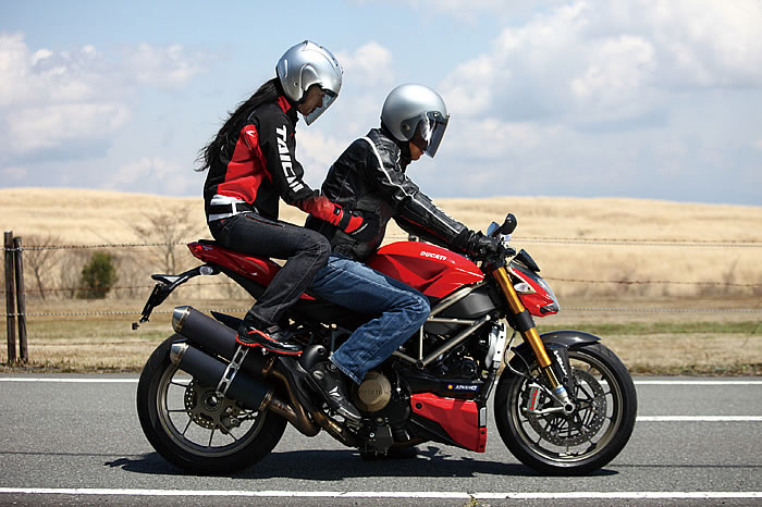 バーハンドルなのでクリップオンタイプに比べれば高い位置と言えよう。とはいえステアリングヘッドはスーパーバイクと同じく低い位置のままなので、やや肘を広げたまま車体に被さるようなポジションとなる。ホイールベースが長い上に前傾姿勢なので、地を這うような加速を全身で感じることが出来る。コーナリングは、ゆるい入力に対してはアンダーが出て立ち気味な反応を見せ、「俺はそんなに甘くないぞ」とライダーのやる気を煽ってくる感じ。そして積極的に攻めて走ると、これがまた楽しくなってくるのだ。テスタストレッタエヴォルツィオーネエンジンの怒涛の加速から思い切りの良いブレーキング、そのまま体重をしっかり預けリーン。手強さは徐々に操る快感となってライダーにフィードバックしてくる。今回試乗したストリートファイターSは、前後にオーリンズ製ショックユニット、そしてトラクションコントロールが装備されており、積極的なライディングを高次元で受け止めてくれた。他メーカーのストリートファイターモデルが、ちょこちょこと振り回すバタフライナイフ的な印象に対し、ドゥカティのストリートファイターは、拳自慢の生粋の喧嘩屋といったところだ。勝負を挑む際、このキャラクターの違いは大きい。