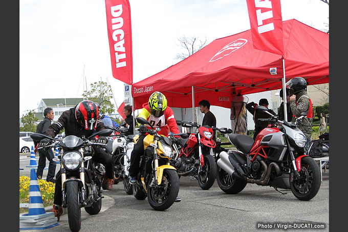 4月中旬から全国各地で開催されるドゥカティジャパン主催のニューモデル試乗会イベント「Ducati Test Ride Caravan」。今回はその第1回目となる「Ducati Test Ride Caravan @ 西宮 」が4月15日(日)、新西宮ヨットハーバー (兵庫県西宮市) にて開催されました。今回の Ducati Test Ride Caravan では、Streetfighter848、Diavel、Monster696 など人気の高いニューモデルがラインナップされ、また一般公道上での試乗コースを体験走行できることから、多くの参加者が列をなす大盛況。春らしい陽気の中、来場された皆さんは思う存分ニューモデルの乗り味を堪能できたようです。