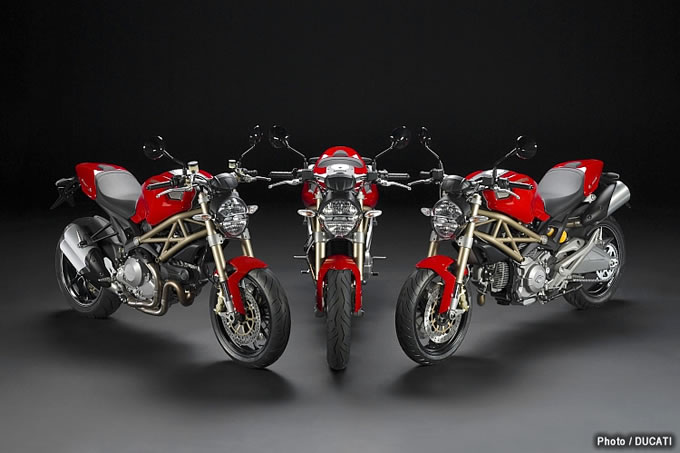 近年、大幅にラインナップを拡充してきたドゥカティは、2013年も各シリーズにニューモデルを投入しています。その中でモンスターも、通常モデルの 1100EVO、796、696 と 2012年に追加されたディーゼルに加え、モンスターシリーズの誕生 20周年を記念した 1100EVO 20th アニバーサリー、796 20th アニバーサリー、696 20th アニバーサリーをラインナップ。ここではそのモンスターシリーズをドゥカティオフィシャルフォトにてご紹介します。