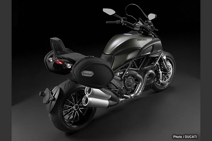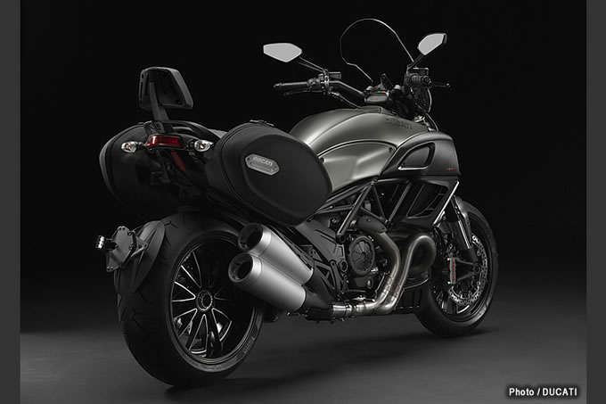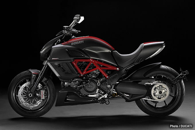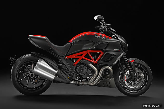2013年もさらなるモデルラインナップ拡充を図るドゥカティは、ディアベルにもバリエーションモデルを追加しています。2012年から継続となるディアベルカーボン、ディアベルクロモ、ディアベルの3モデルに加えて、ツーリング装備仕様のディアベルストラーダ、スポーティなカラーリングのディアベルストライプ、マットブラックに身を包んだディアベルダークの3モデルを新たにラインナップ。合計6モデルになりました。