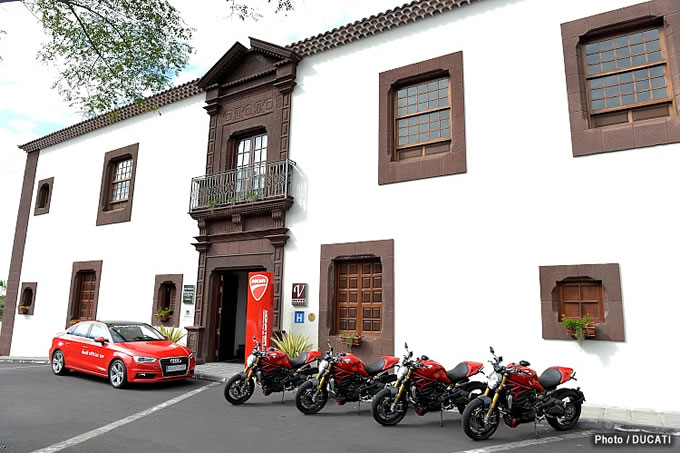01試乗会が行われたテネリフェ島のホテル。ドゥカティにとって重要なパートナーとなるアウディの四輪車は、今回もオフィシャルサポートカーとして活躍した。