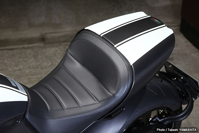 06水平にリブ加工が施された新形状のシートは前後長が拡大され、さまざまな体格のライダーにマッチするように変更された。なお、日本向けシートは本国仕様より 20mm 低い 750mm。シングルシートカバーも軽量なカーボンファイバーとなる。