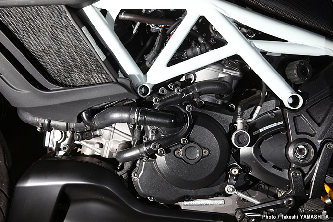 2010年11月にミラノで開催された EICMA 国際モーターサイクルショーで鮮烈なデビューを果たしたディアベル。世界的に需要のあるクルーザージャンルに進出することは正式発表前のスパイショットから予想されたが、それまで信条としていたスポーツ性をかなぐり捨ててまで営業戦略を優先するのか? と揶揄する声もあった。ところが発表されたディアベルはスタイルこそクルーザー的なロー&ワイドなフォルムだが、その中身はスポーツマインドあふれる正真正銘のドゥカティであった。
